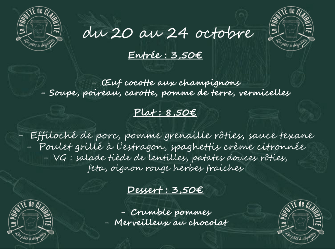 Toutes les semaines, un menu différent vous sera proposé en fonction des saisons.